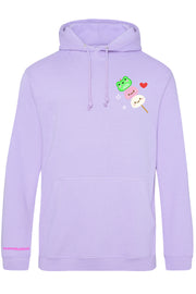 Albert but make him edible-looking. Inspired by dango (Japanese mochi on a stick), this hoodie stacks up three sweet little faces, including our softest froggy boy, on a pastel skewer of serotonin. The ultimate cozy-core hoodie for snack lovers, frog lovers, or just people who appreciate cute things.
