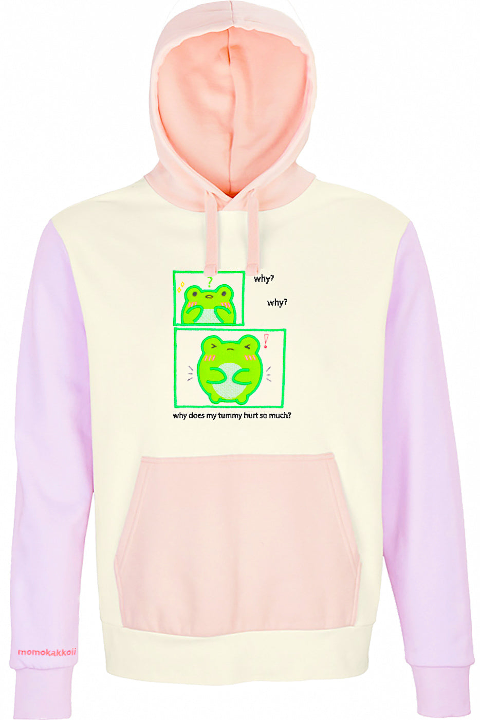 - Farbenfrohes Design: rosa Kapuze und Fronttasche, lavendelfarbene Ärmel