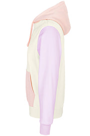 Das kontrastierende Design mit rosa Kapuze und Vordertasche sowie lavendelfarbenen Ärmeln verleiht Ihrer Garderobe ein verspieltes und auffälliges Element.
