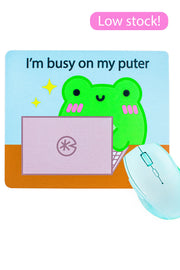 Meet the “I'm Busy on My Puter” Mouse Pad. An iconic addition to your workspace featuring Albert the Frog being a total tech queen. Whether you’re replying to 87 emails or pretending to work while actually browsing memes, this thick, smooth mouse mat is your loyal desk buddy.