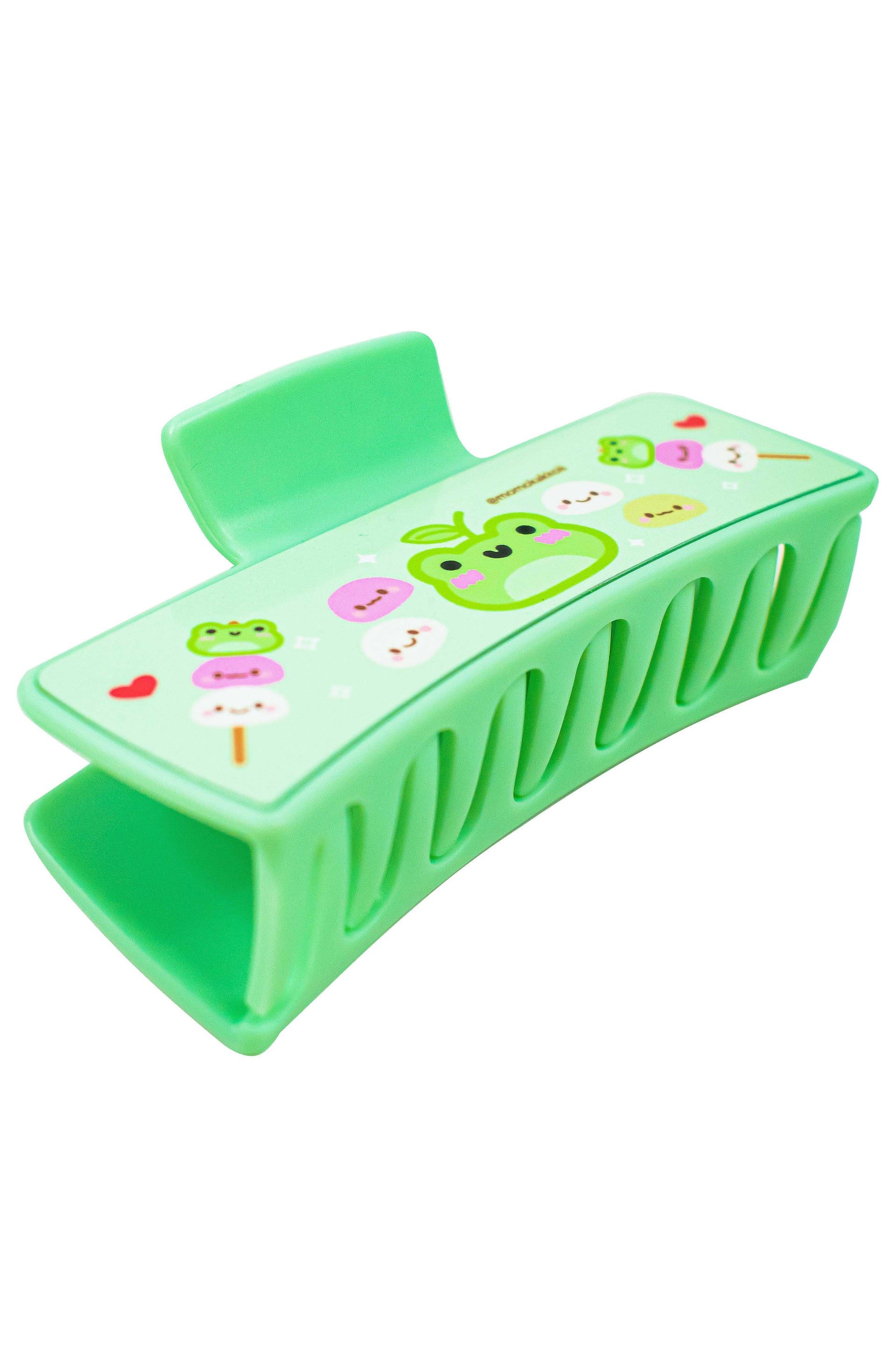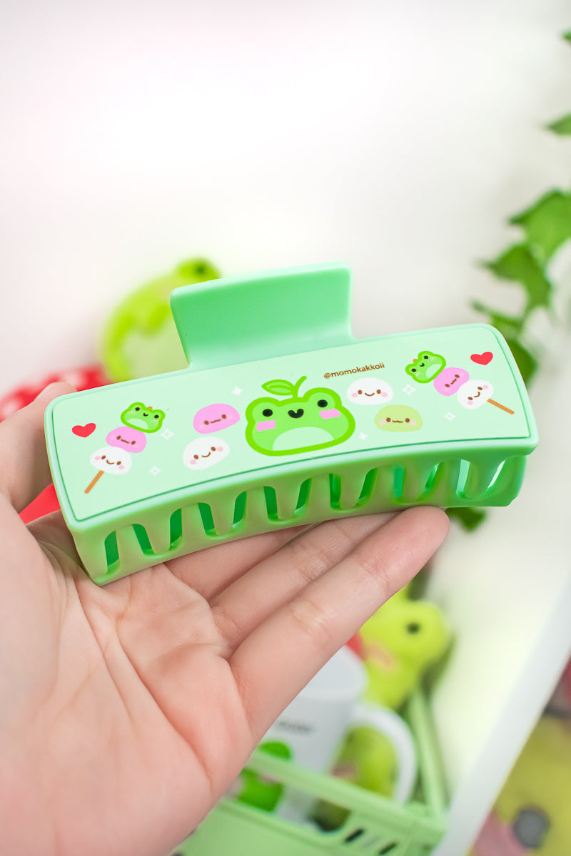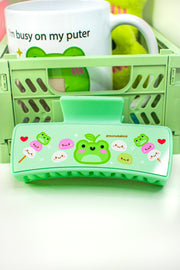 Say hello to maximum snack energy with our Mochi Albert Hair Claw, featuring Albert the frog in his most adorable form yet, surrounded by squishy, smiley mochi! This pastel green claw clip is a sweet treat for your hair and your soul, perfect for anyone who lives for cuteness, cozy vibes, and cute snackcore aesthetics.