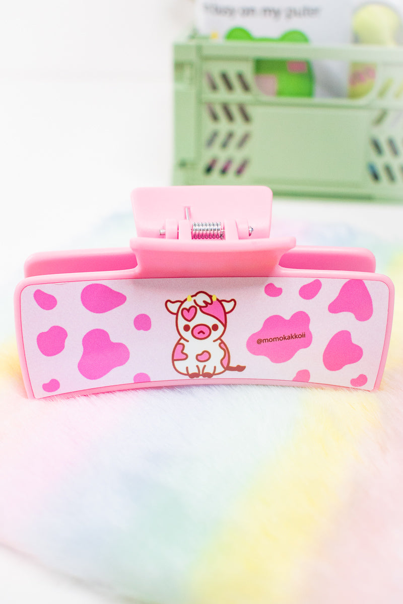 Keep your hair cute and your vibes even cuter with our Strawberry Cow Hair Claw! a dreamy pastel clip featuring the sweetest little cow you've ever seen, sprinkled with pink cow spots and soft farmcore energy.