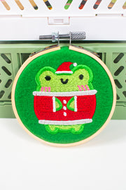 Jolly vibes only ✨ This embroidered hoop features our beloved Albert the Frog dressed as Santa, ready to sleigh your holiday decor. Hand-finished and bursting with cuteness, this piece is perfect for kawaii lovers, frog fanatics, and anyone obsessed with cheerful little guys in festive fits.