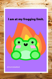 Bring a touch of whimsy to your wall decor with the 'I'm at my frogging limit' art print, featuring the adorably kawaii Albert the frog. This delightful piece of art combines vibrant colors with a light-hearted, punny message that resonates with anyone who's ever felt a bit overwhelmed.