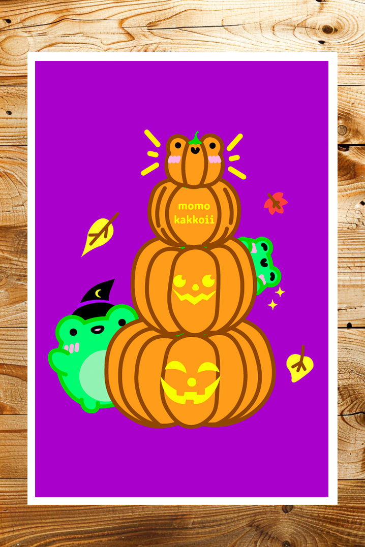 This delightful artwork captures Albert the Frog in a playful Halloween scene, perched atop a towering stack of grinning pumpkins. Designed with vibrant colors and adorable details, this print is perfect for anyone who loves a touch of enchantment and seasonal spirit.
