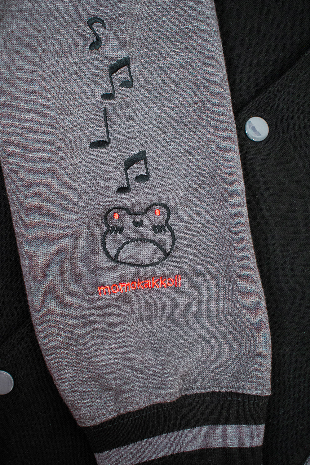 The front of the jacket keeps it sleek and simple, allowing the dramatic artwork on the back to take center stage, while the sleeves are adorned with subtle musical symbols that whisper tales of rhythmic escapades and untold stories.