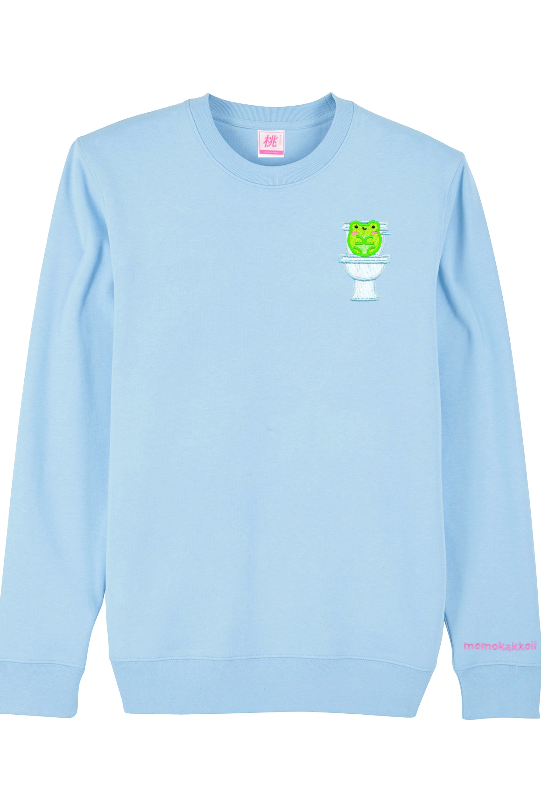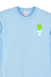 The playful embroidery design features a minimalistic version of Albert the frog sitting on a toilet. This super soft and comfy sweatshirt is made with high-quality organic cotton, ensuring it's both comfortable and eco-friendly.