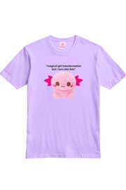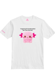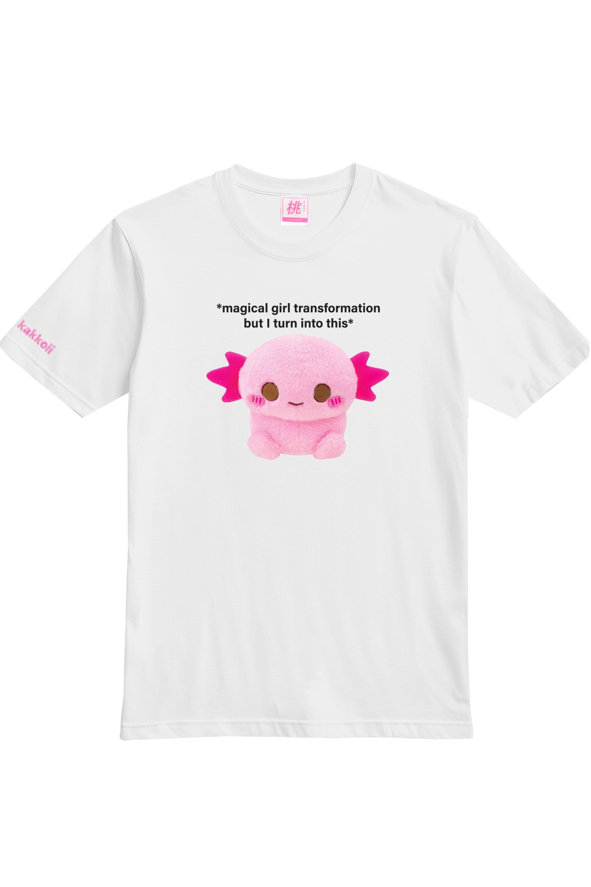 Step into your cutest form with our “Magical Girl Transformation Xoxi Printed T-shirt”! Featuring an adorable print of Xoxi the Axolotl plushie, this shirt humorously plays on the magical girl trope with a twist – you transform into the cutest plushie version of yourself! Perfect for anyone who loves kawaii fashion, magical girl vibes, and, of course, cuddly axolotls!